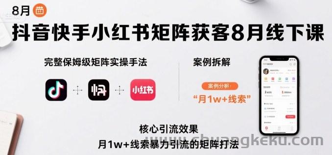 创客库 » 抖音快手小红书矩阵获客8月线下课,完整保姆级矩阵实操手法与案例拆解,月1w+线索暴力引流的矩阵打法