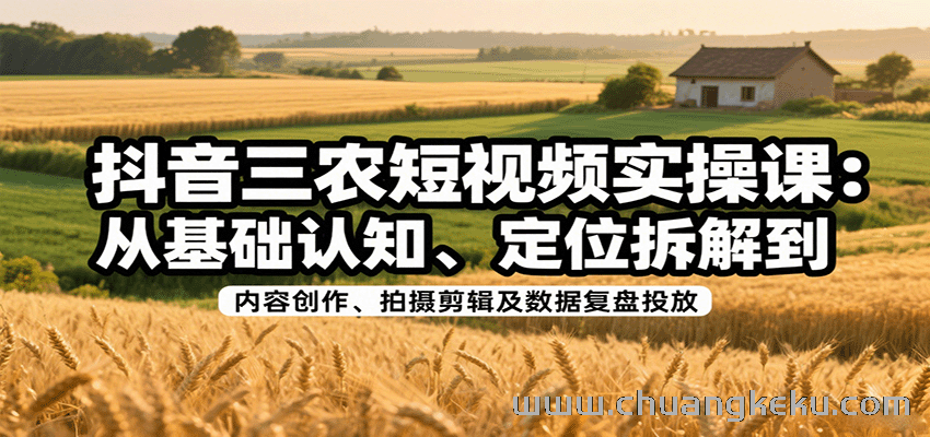 创客库 » 抖音三农短视频实操课:从基础认知、定位拆解到内容创作、拍摄剪辑及数据复盘投放