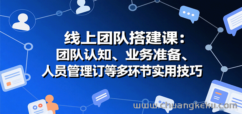 创客库 » 线上团队搭建课:团队认知、业务准备、人员管理、协议签订等多环节实用技巧