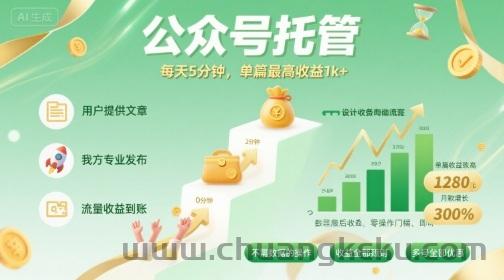 【公众号托管 】我提供文章,你发布,每天5分钟,单篇最高收益1k+【揭秘】