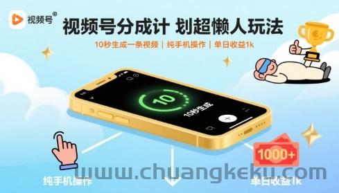 创客库 » 视频号分成计划超懒人玩法,10秒生成一条视频,纯手机操作,单日收益1k+【揭秘】