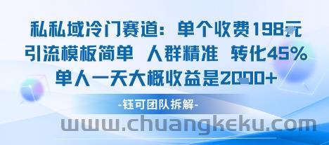 私域冷门赛道单个收费198米引流模板简单人群精准 45%的转化率单人一天大概收益多张