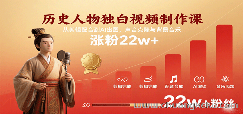 创客库 » 历史人物独白视频制作课,从剪辑配音到AI出图,声音克隆与背景音乐,涨粉22w+