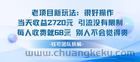 创客库 » 老项目新玩法当天收益1k+每个人收费68米 不违规不封号
