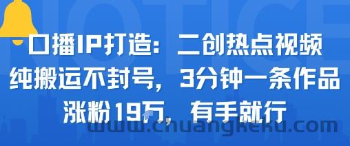 创客库 » 口播IP打造:二创热点视频,纯搬运不封号,3分钟一条作品,涨粉19w,有手就行
