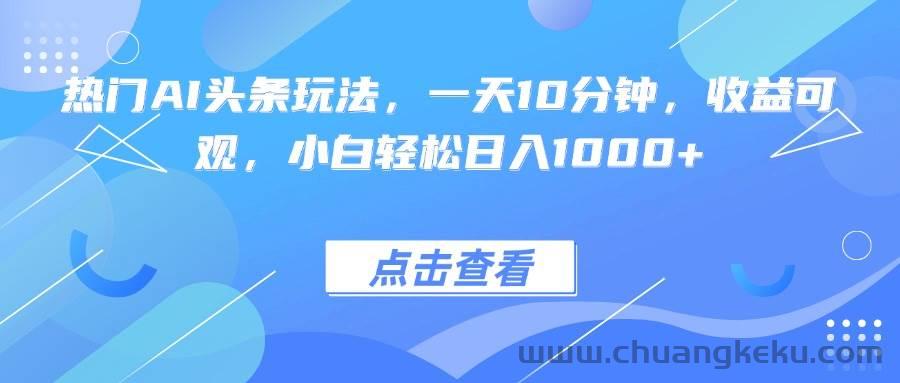 热门AI头条玩法,一天10分钟,收益可观,小白轻松日入1000+
