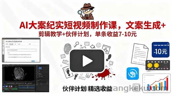 创客库 » (15992期)AI大案纪实短视频制作课,文案生成+剪辑教学+伙伴计划,单条收益7-10元