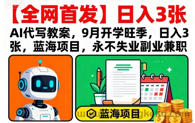 创客库 » 【全网首发】AI代写教案,9月开学旺季,日入3张,蓝海项目,永不失业副业兼职