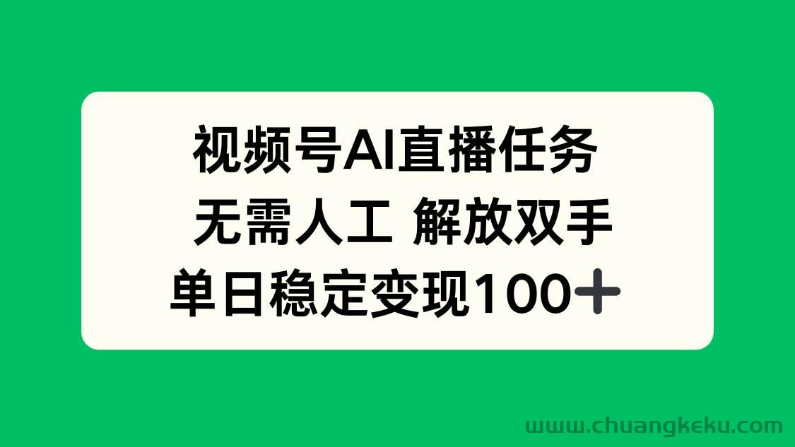 视频号AI直播任务,无需人工,解放双手,当天变现100+