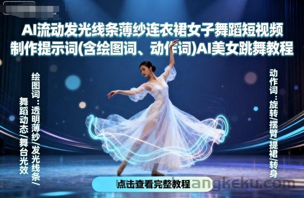 创客库 » AI流动发光线条薄纱连衣裙女子舞蹈短视频制作提示词(含绘图词、动作词)AI美女跳舞教程