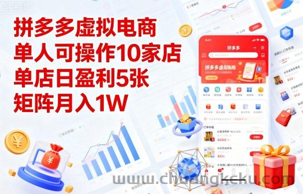 创客库 » 拼多多虚拟电商,单人可操作10家店,单店日盈利5张,矩阵月入1W+【揭秘】