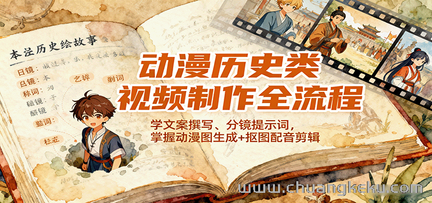 创客库 » 动漫历史类视频制作全流程,学文案撰写、分镜提示词,掌握动漫图生成+抠图配音剪辑