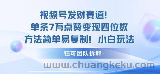 视频号发财赛道单条7W点赞变现四位数方法简单易复制小白玩法