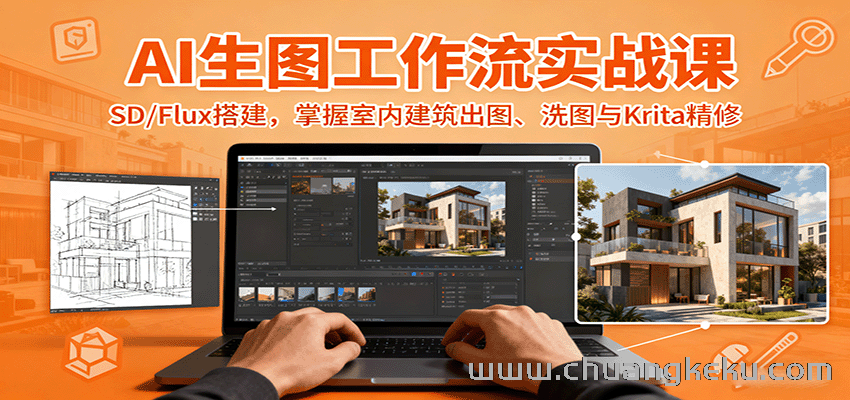 创客库 » AI生图工作流实战课:SD/Flux搭建,掌握室内建筑出图、洗图与Krita精修