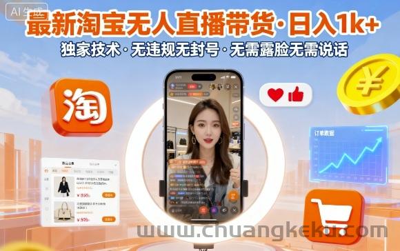 创客库 » 最新淘宝无人直播带货,日入1k+,独家技术,无违规无封号,无需露脸无需说话【揭秘】
