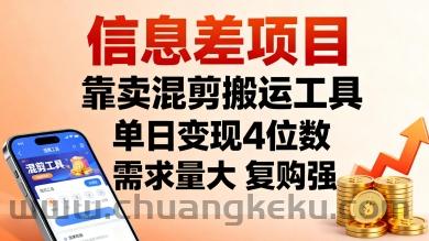 信息差项目,靠卖混剪搬运工具,单日变现4位数,需求量大,复购强,操作简单,几分钟一条视频
