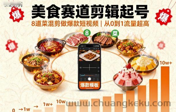 创客库 » 美食赛道剪辑起号,8道菜混剪做爆款短视频,从0到1,流量超高