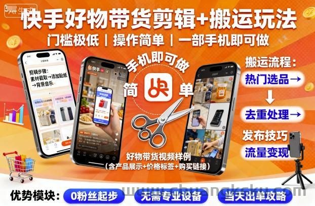 创客库 » 快手好物带货剪辑+搬运玩法,门槛极低,操作简单,一部手机即可玩做