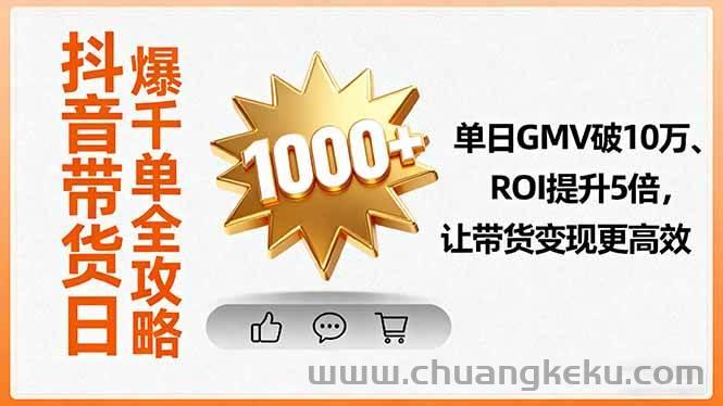 创客库 » (16087期)抖音带货日爆千单全攻略,单日GMV破10万、ROI提升5倍,让带货变现更高效