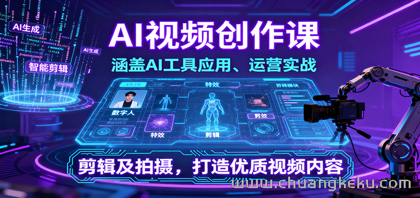 创客库 » AI视频创作课,涵盖AI工具应用、运营实战、剪辑及拍摄,打造优质视频内容