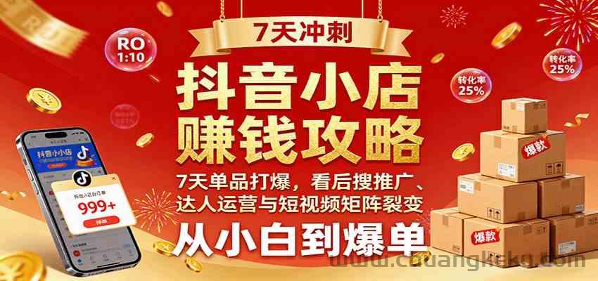 创客库 » 抖音小店赚钱攻略:7天单品打爆技巧,看后搜推广、达人运营与短视频矩阵裂变实战