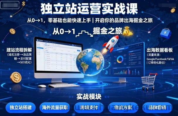 独立站运营实战课,从0到1,零基础也能快速上手,开启你的品牌出海掘金之旅