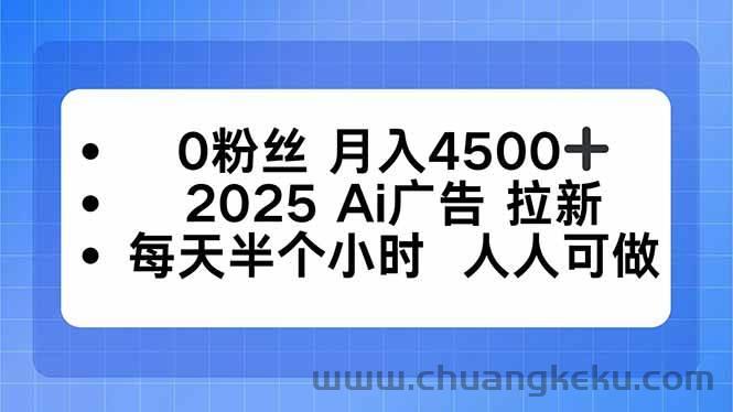 0粉丝 月入4500+,2025AI广告拉新,每天半个小时 人人可做