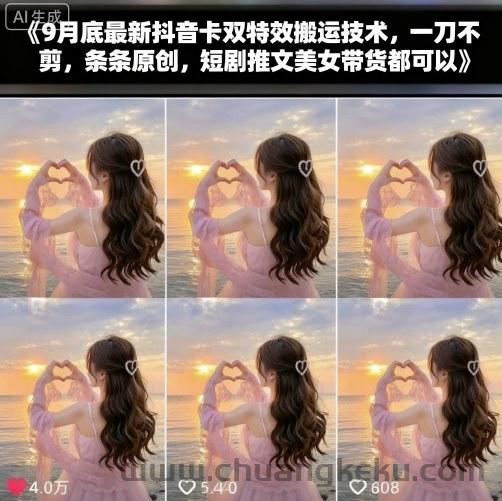 创客库 » 9月底最新抖音卡双特效搬运技术,一刀不剪,条条原创,短剧推文美女带货都可以