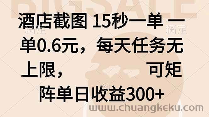 创客库 » (16212期)酒店截图 15秒一单 一单0.6元,每天任务无上限,可矩阵单日收益300+