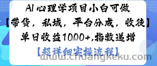 创客库 » AI+心理学项目,小白可做,变现渠道多【带货,私域,平台分成,收徒】单日收益1k