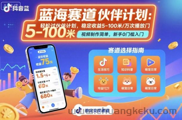 创客库 » 抖音蓝海赛道,轻松过伙伴计划,视频制作简单,万次播放收益在5-100米,稳定收益