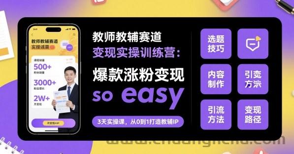 教师教辅赛道变现实操训练营,爆款涨粉变现so easy