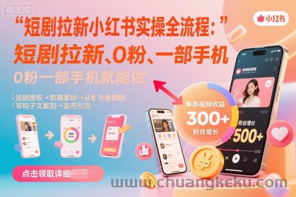 创客库 » 短剧拉新小红书实操全流程,0粉一部手机就可以做,详细教程