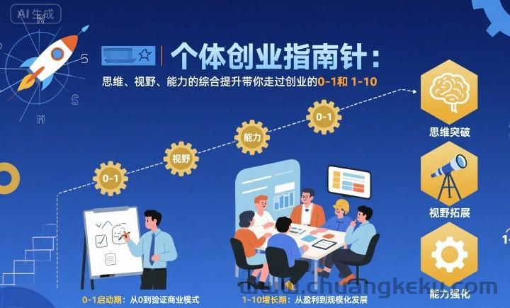 创客库 » 个体创业指南针,思维、视野、能力的综合提升带你走过创业的0-1和1-10【音频】