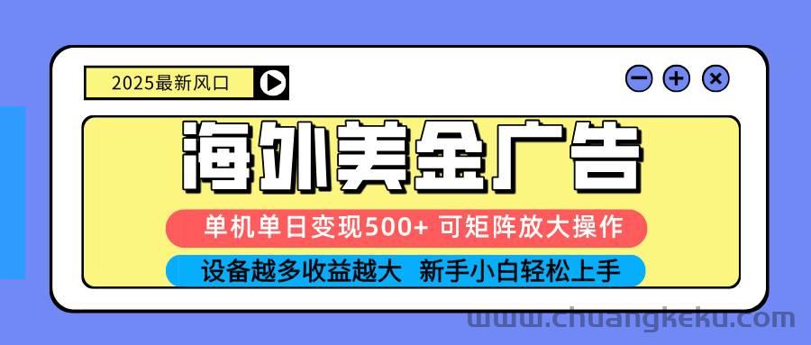 创客库 » (16266期) 2025吃肉海外美金广告,单机单日变现500+,矩阵可无限放大,设备越多…