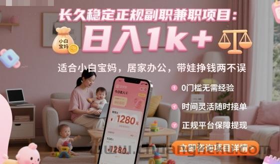 长久稳定正规副职兼职项目,日入1k+,适合小白宝妈,居家办公,带娃挣钱两不误【揭秘】