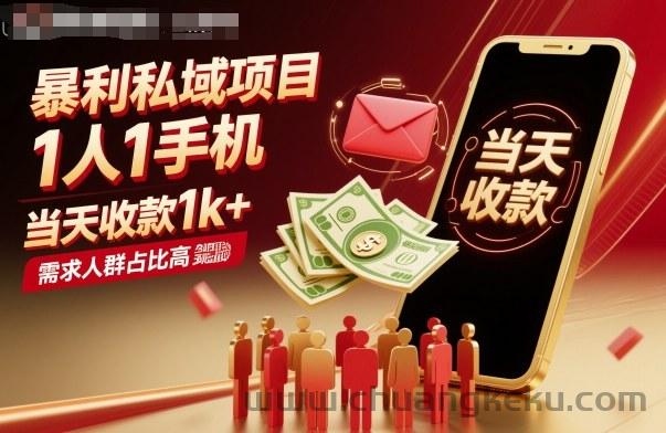 暴利私域项目1人1手机,当天收款1k+,需求人群占比高,当天就能见到钱