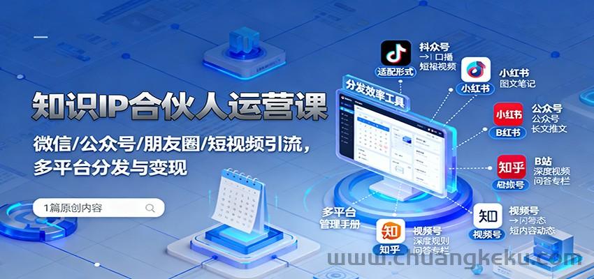 创客库 » 知识IP合伙人运营课:微信/公众号/朋友圈/短视频引流,多平台分发与变现