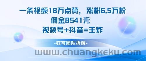 创客库 » 一条视频18W点赞,涨粉6.5W粉佣金8541米,视频号+抖音=王炸