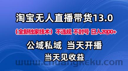 创客库 » 淘宝无人直播13.0,公域私域技术,不封号,不违规布局下半年旺季赛道,日入1K+(独家技术)【揭秘】