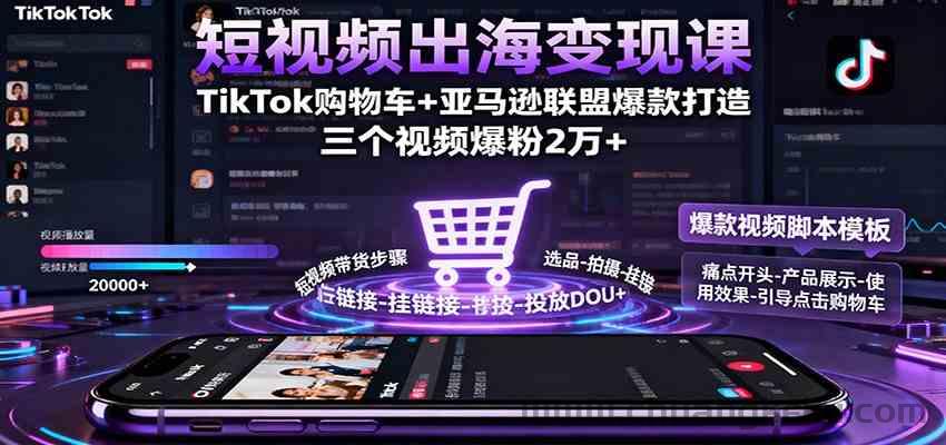 本课程是一套完整的TikTok等海外短视频平台实战指南,系统性地讲解了如何从零开始利用短视频实现引流、带货、产品测评等商业目标。课程内容覆盖了从抢占TikTok购物车、复制亚马逊联盟带货模式等核心玩法,到低成本获客、快速涨粉、打造千万级播放爆款视频的实操技巧,并深入解决了账号矩阵布局、视频限流、团队搭建与代运营等关键问题,旨在帮助学员与企业在海外短视频风口期快速建立优势,实现销售额与品牌影响力的双重增长。