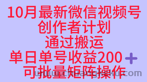 10月最新视频号收益最大化赛道长久稳定红利项目,单日单号收益2张+可批量矩阵操作