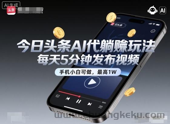 创客库 » 今日头条AI代躺賺玩法,每天5分钟发布视频,手机小白可做,最高1W+【揭秘】