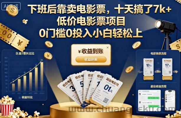 创客库 » 下班后靠卖电影票,十天搞了7k+,低价电影票项目,0门槛0投入小白轻松上手【揭秘】