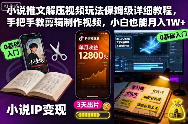 小说推文解压视频玩法保姆级详细教程,手把手教剪辑制作视频,小白也能月入1W+