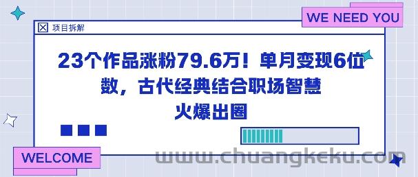 创客库 » 23个作品涨粉79.6W!单月变现6位数,古代经典结合职场智慧火爆出圈