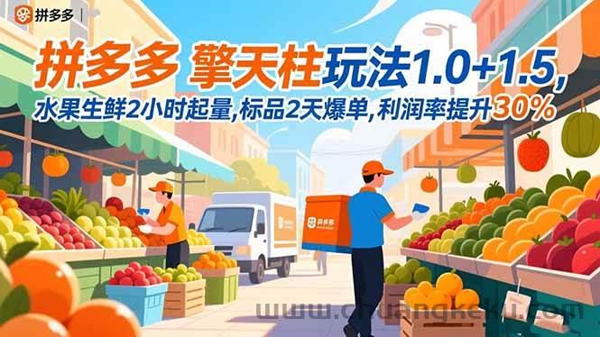 创客库 » (16495期)拼多多 擎天柱玩法1.0+1.5,水果生鲜2小时起量,标品2天爆单,利润率提升30%