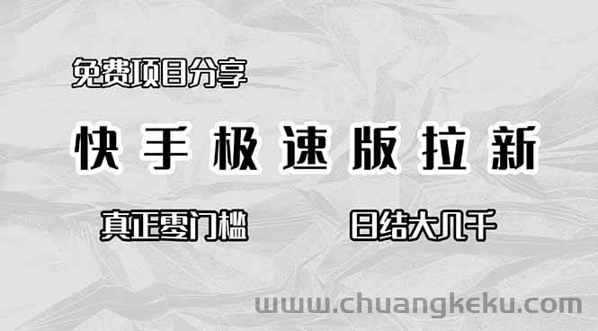 创客库 » (16560期)免费项目分享,快手极速版拉新,真正零门槛,日结大几千