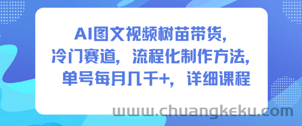 AI图文视频树苗带货,冷门赛道,流程化制作方法,单号每月几K,详细课程
