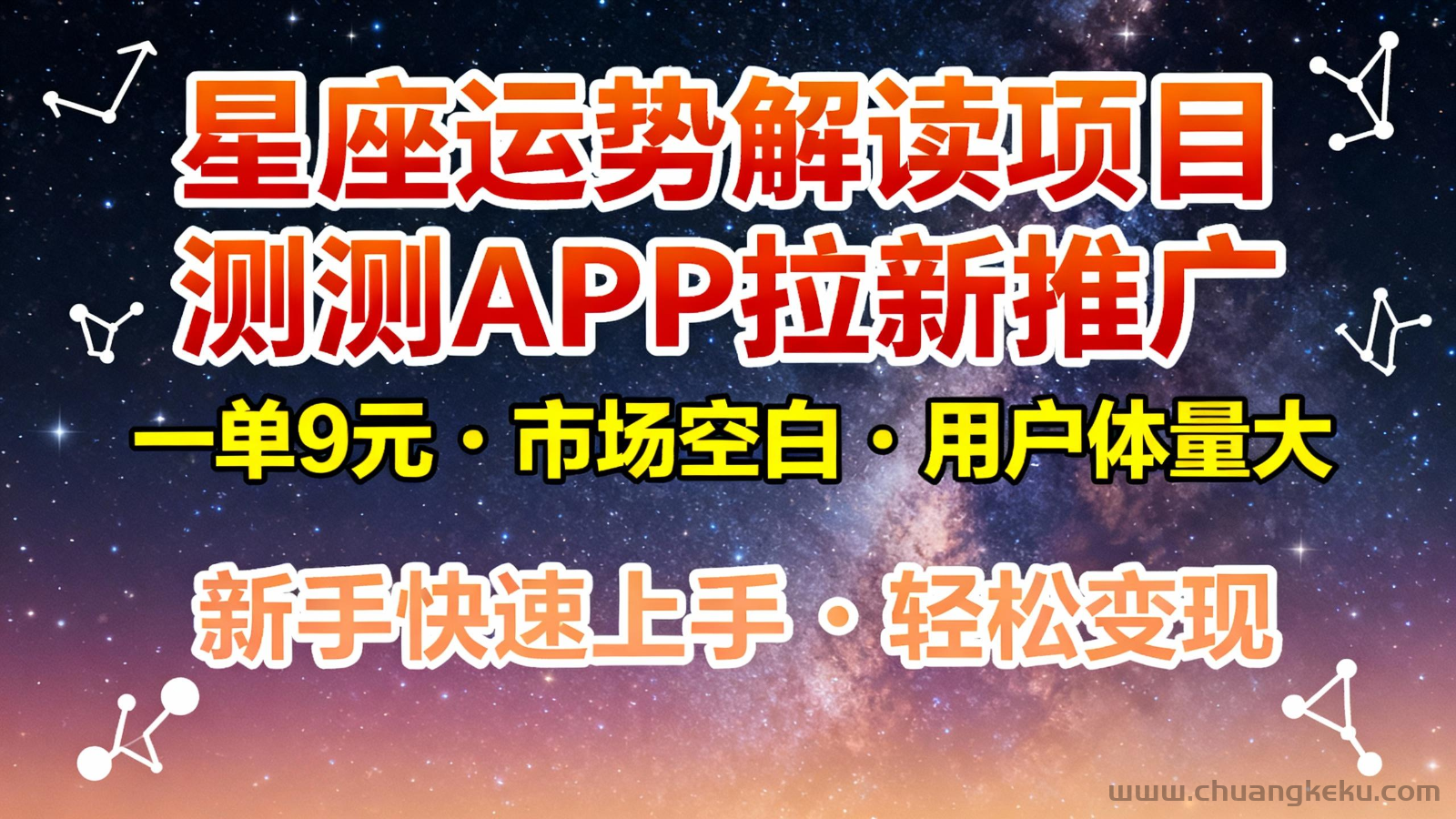 创客库 » 星座运势解读项目,测测APP拉新推广,9元/单,市场空白,用户体量大,新手也能快速…